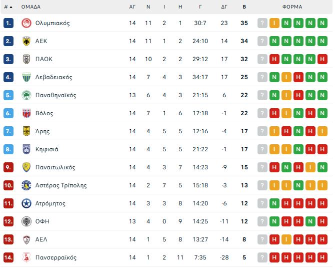 Η ομάδα του Χοσέ Λουίς Μεντίλιμπαρ είναι πρώτη στη Superleague (35 β.), στο +1 από την ΑΕΚ, στο +3 από τον ΠΑΟΚ και στο +13 από τον Παναθηναϊκό, ενώ στη League Phase του Κυπέλλου Ελλάδος Betsson είναι στην 4η θέση, με ένα ματς λιγότερο κόντρα στον Ηρακλή και σε περίπτωση νίκης την προσεχή Τετάρτη, οι Πειραιώτες θα τερματίσουν πρώτοι.