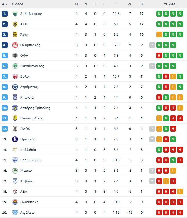 Η βαθμολογία της League Phase του Κυπέλλου Ελλάδος Betsson: