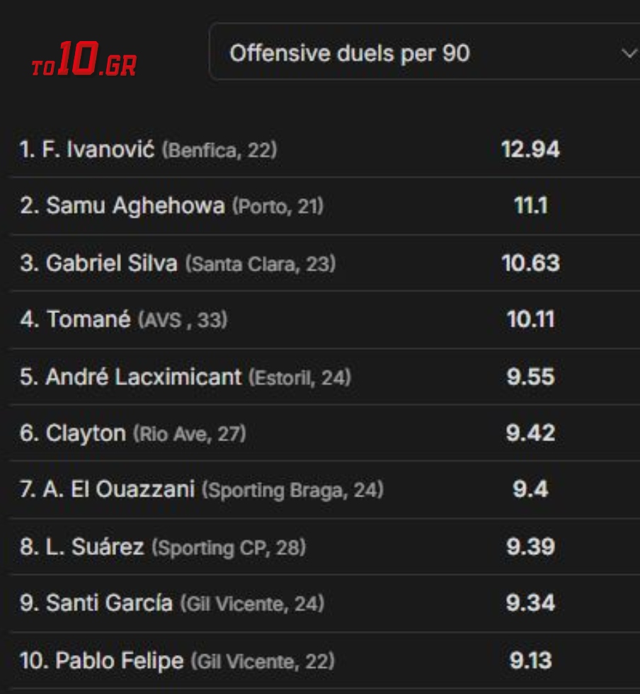 Σημαντικό είναι ακόμη ένα στοιχείο στο παιχνίδι του, που σίγουρα θα… εκτιμήσει ο Χοσέ Λουίς Μεντιλίμπαρ. Ο Κλέιτον είναι όγδοος ανάμεσα σε όλους τους στράικερ του πορτογαλικού πρωταθλήματος στις μονομαχίες κατά τη διάρκεια μιας επιθετικής ενέργειας, με 9,42 ανά 90 λεπτά, ενώ κερδίζει το 38,8% αυτών. Συνολικά φέτος, ο 27χρονος κερδίζει πάνω από το 40% των μονομαχιών που δίνει με τους αντιπάλους.
