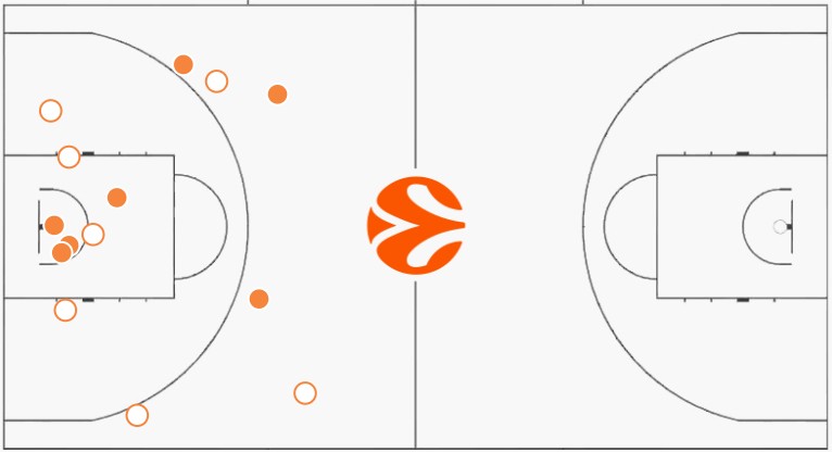 Το Shot Chart του Σάσα Βεζένκοφ με τον Ερυθρό Αστέρα.