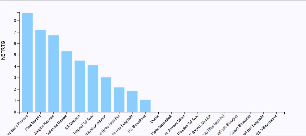 Παρά το ιδιαίτερο στυλ παιχνιδιού της, η Βαλένθια στηρίχθηκε πολύ στην άμυνά της. Δεχόταν μόνο 114.3 πόντους/100 κατοχές, η 2η καλύτερη επίδοση στη διοργάνωση. Επιθετικά ήταν η 8η καλύτερη σκοράροντας 119.6 πόντους/100 κατοχές, σουτάροντας με 59% True Shooting (10η, ακριβώς στον μέσο όρο), ενώ στα εντός πεδιάς (eFG) είχε 56.2% πράγμα που την έφερε στην 6η θέση της σχετικής λίστας. Στις βολές ήταν 17η, με μόλις 28.4 Free Throw Rate (βολές ανά σουτ).
